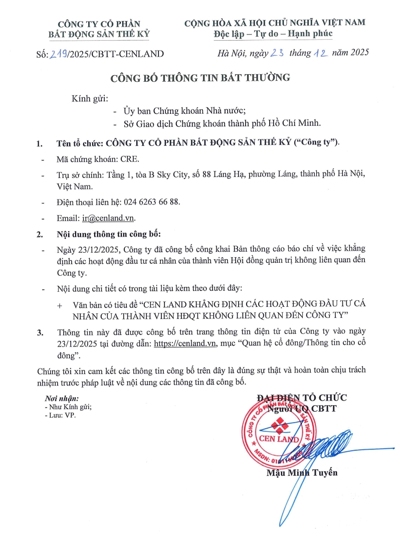 Công bố thông tin - Thông cáo báo chí về hoạt động đầu tư cá nhân của thành viên Hội đồng quản trị
