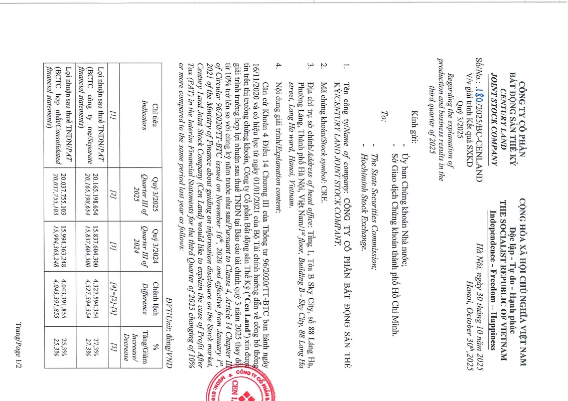 Giải trình kết quả sản xuất kinh doanh quý 3 năm 2025